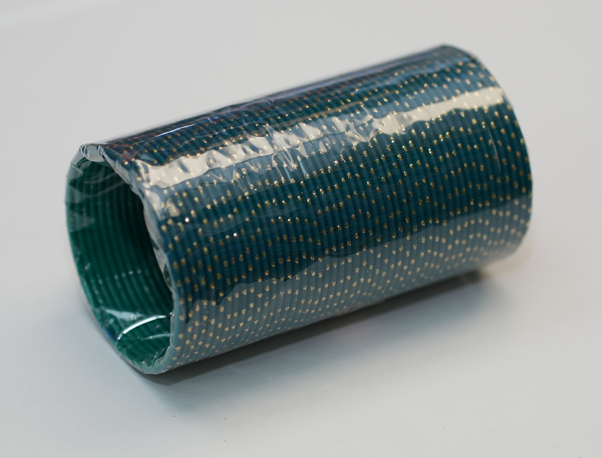 Enhance your traditional look with these stunning bangles beautifully accented with golden dots. Their charming finish and intricate detailing add a touch of festive charm and elegance to any outfit.