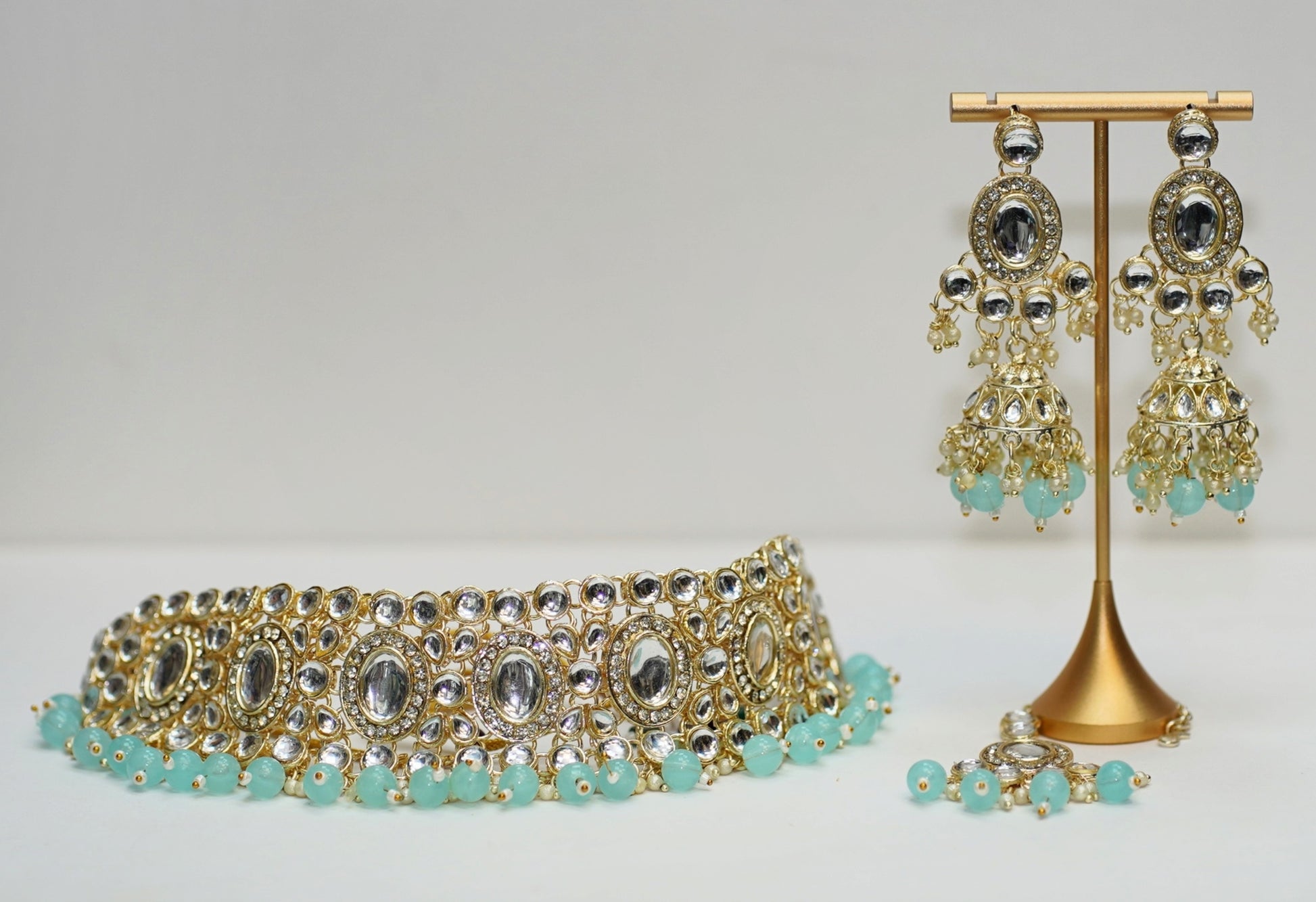 Silver & Pastel Green Necklace Set